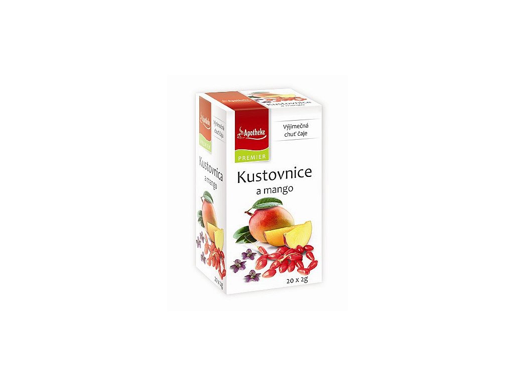 Bylinný čaj porcovaný, v nálevových sáčcích. Lahodný ovocný čaj s exotickou chutí plodů kustovnice a sladkého manga.