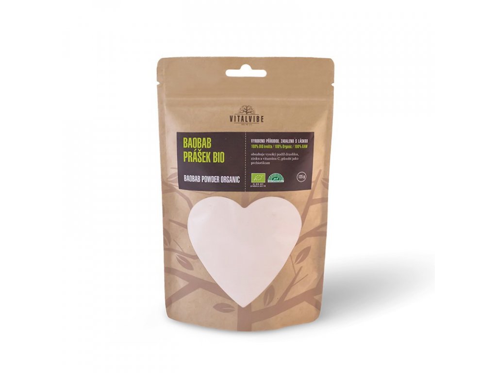 Ovoce baobab (Adansonia digitata) rostlo původně v Africe. U některých stromů baobab bylo doloženo stáří do 1000 let. Tomuto stromu se často říká „starověký strom života“. Kmeny mohou obsahovat více než 100,000 litrů vody, což stromům pomáhá přežít dlouhodobá období sucha. Ovoce se nalézá uvnitř tvrdých částí, které visí ze stromu vzhůru nohama. Ovoce baobabu má citrusovou chuť a je bohaté na vitamíny a minerály.Historie