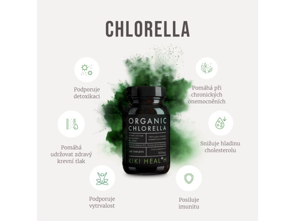 Chlorella je zelená mikroskopická řasa bohatá na chlorofyl, díky kterému podporuje přirozenou detoxikaci organismu.Pro výrobu tohoto doplňku stravy byla chlorella pečlivě kultivována ve filtrované přírodní vodě extrahované z hluboké půdy, která je chráněna před kontaminací těžkými kovy.