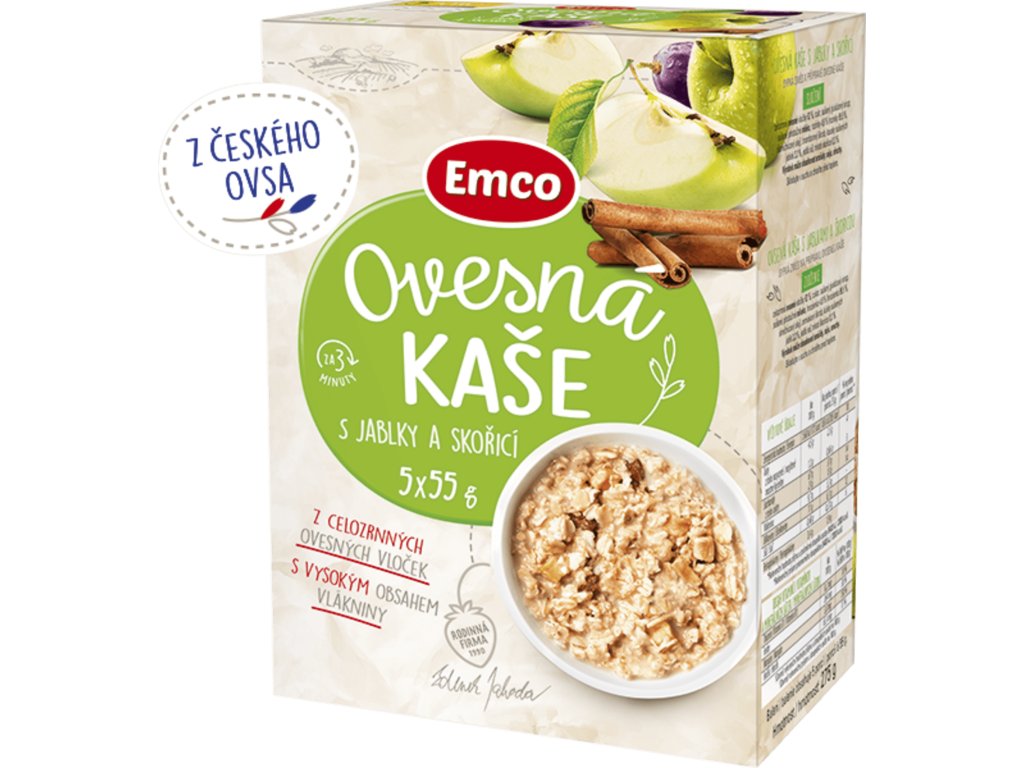 Emco Ovesná kaše s jablky a skořicí 5x55 g - výprodej exp. 12.3.2025