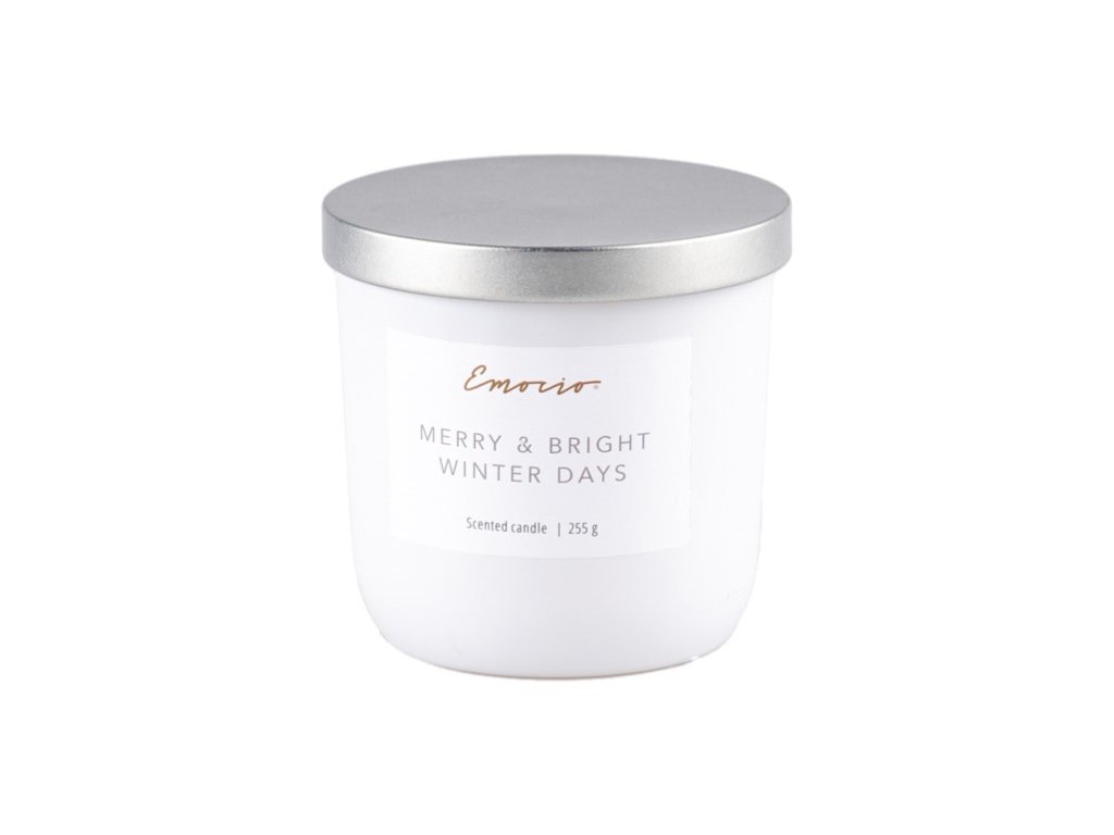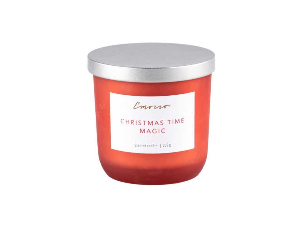 Červená sojová vonná svíčka Emocio Sklo 95x95 mm s kovovým víčkem Christmas Spice, Frosted Pine, Snowy Night