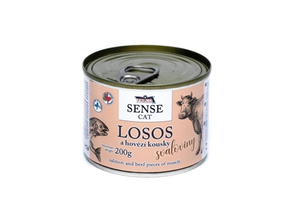 FALCO SENSE Cat losos a hovězí kousky svaloviny, konzerva 200 g