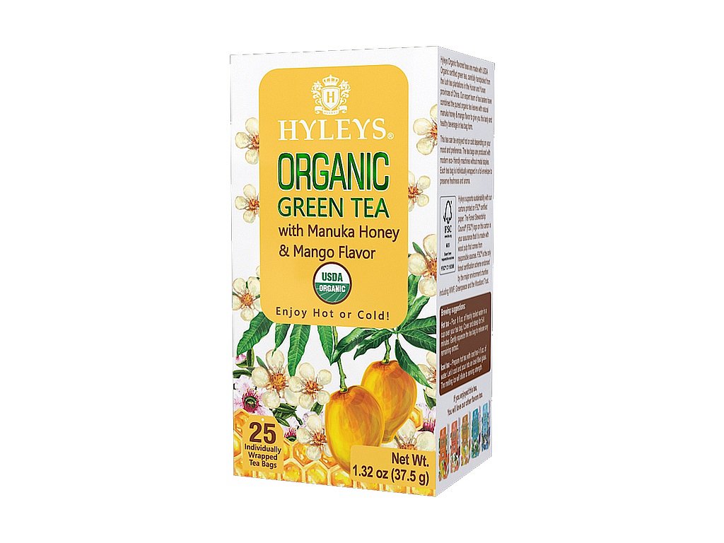 HYLEYS BIO Green Manuka Honey & Mango přebal 25x1,5g