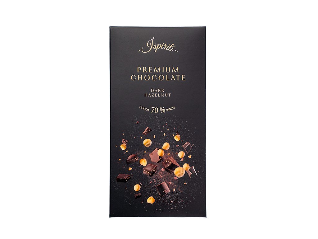 ISPIRITI Hořká čokoláda 70% s kousky lískových oříšků 80g