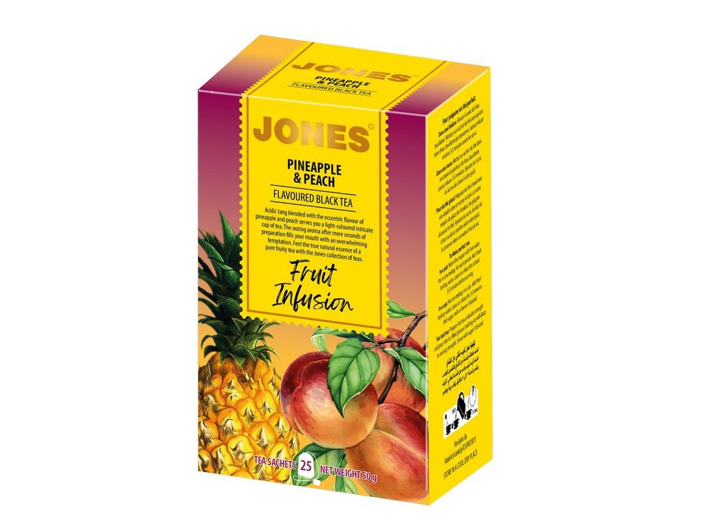 Složení: černý čaj, aroma (ananas, broskev, kyselina citronová)