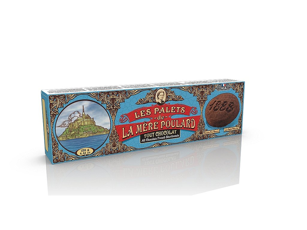 La Mére Poulard All chocolate French shortbread jsou opravdu čokoládové sušenky. Obsahují 64% hořkou čokoládu, která je perfektně promísena se základním těstem na máslové sušenky. Navíc při každém kousnutí navíc narazíte na kousky 50% hořké čokolády, která se Vám bude rozplývat na jazyku a Vy se budete cítit jako v čokoládovém nebi.