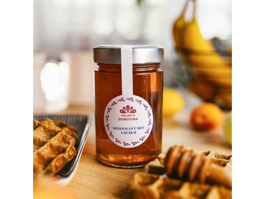 Medovicový dubový med se skládá ze sladkých šťáv květů dubu. To znamená z pylu a z nektaru, který včely obohacují o výměšky svých žláz. Výměšky obsahují především enzymy přispívající ke štěpení cukrů. Voda tvoří asi jednu šestinu (14–19 %) obsahu medu. V našem medu nenajdete žádné přidané stabilizátory, cukerné sirupy nebo jiné ředící šťávičky.
