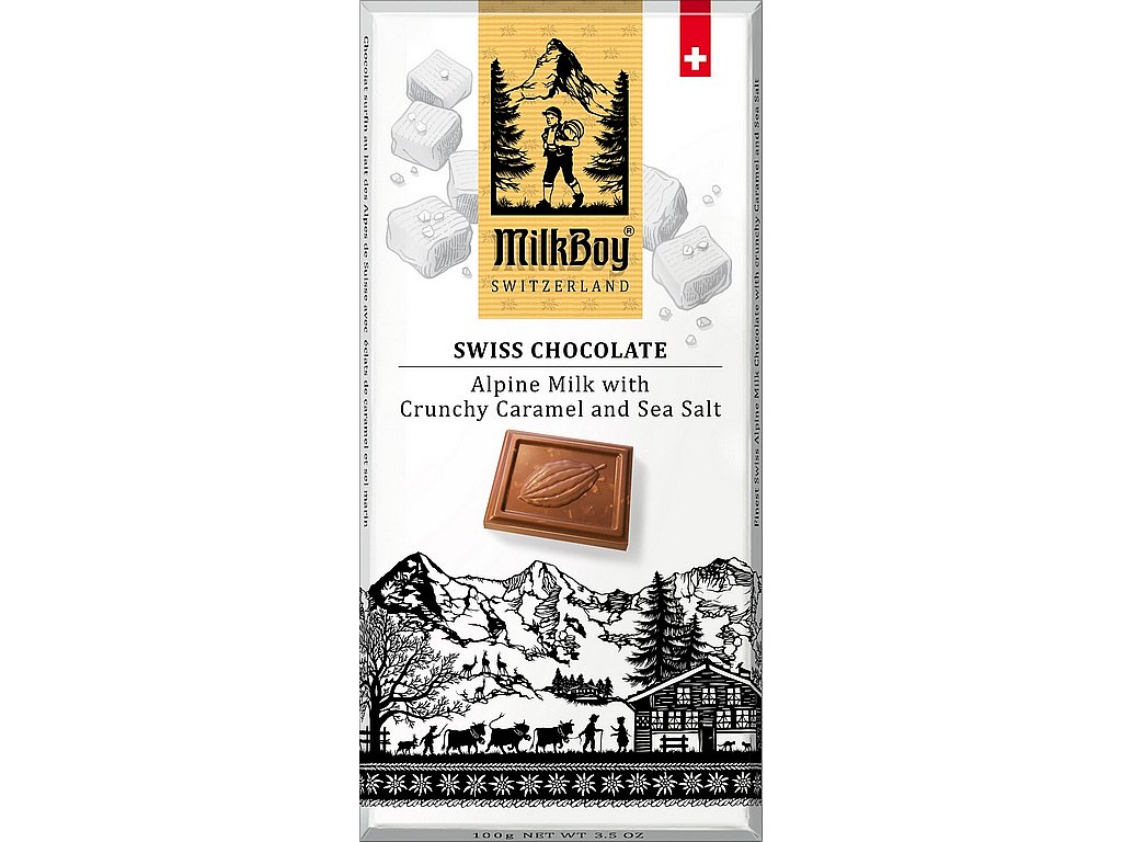 Když se řekne Švýcarsko, většině se tak vybaví pohled na zelené alpské louky a pasoucí se kravičky. Nikoho tedy nepřekvapí, že mléčná čokoláda vznikla právě tam. Poctivý řemeslný přístup, prvotřídní mléko a kakao z ekologicky udržitelného zemědělství zaručuje lahodný chuťový zážitek z několikrát oceněné mléčné čokolády s křupavým karamelem a špetkou mořské soli.
