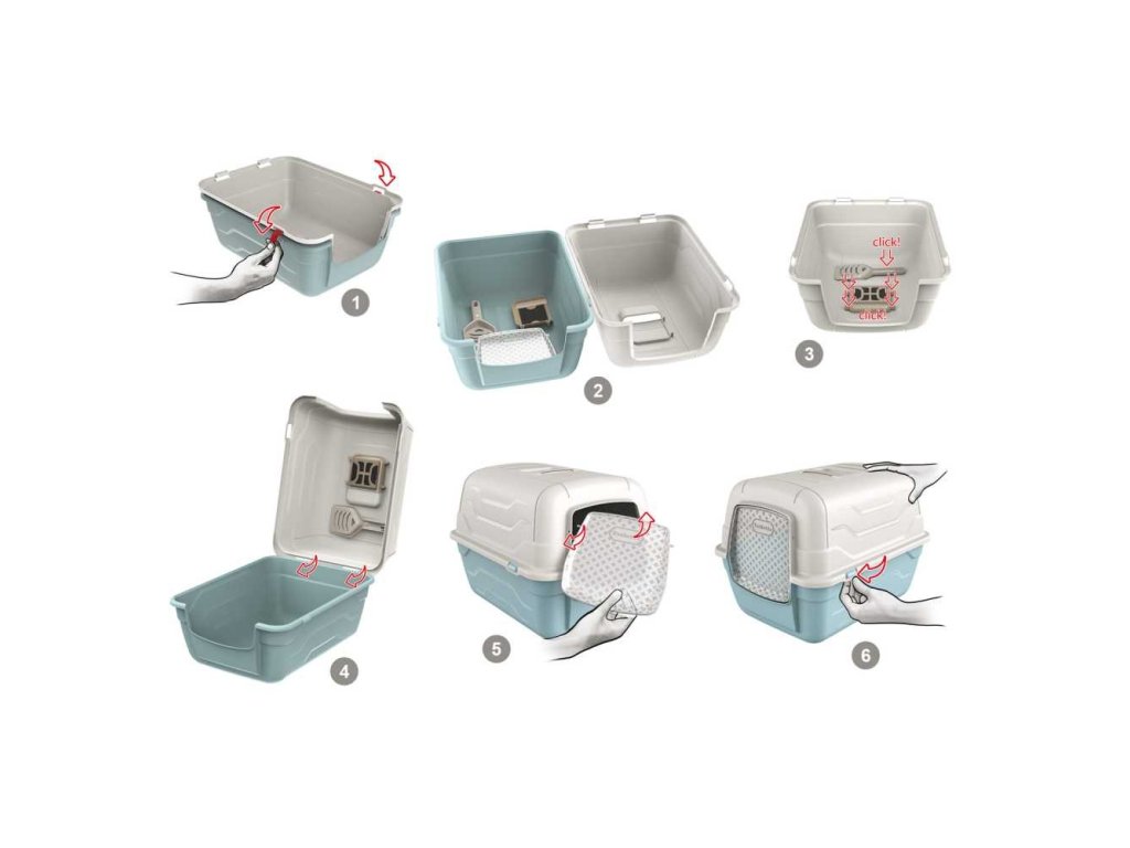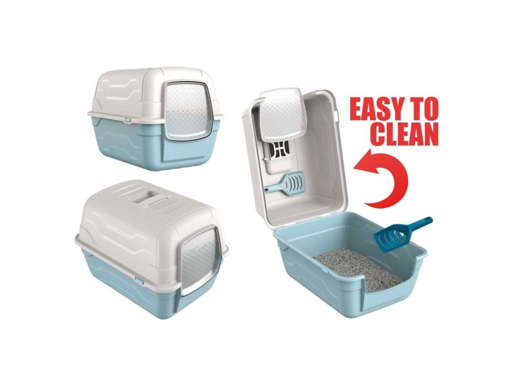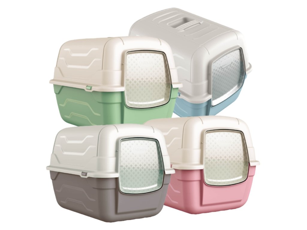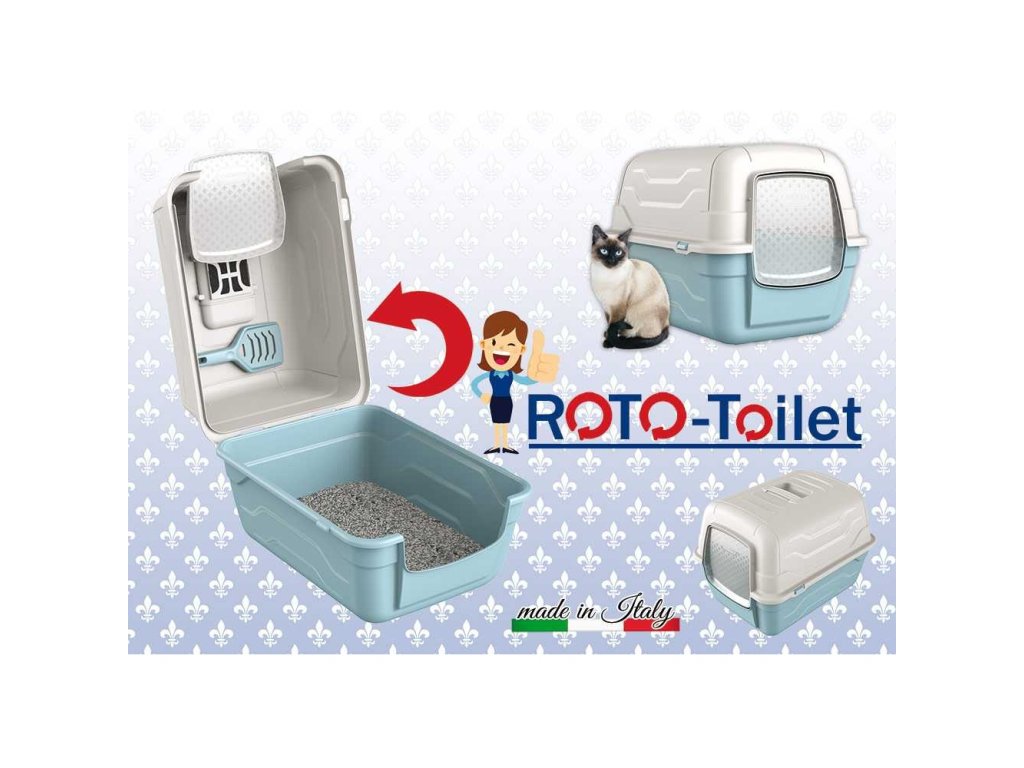 Krytá toaleta s typickým italským designem na dvířkách. Její předností je velmi snadný přístup pro čištění. Stačí odklopit a vyjmout lopatku z držáku.