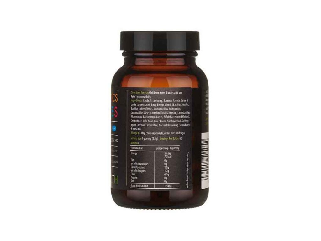 Body Biotics Gummies kombinují jedinečná zemní neboli půdní probiotika se skutečným ovocem pro vytvoření lahodné chuti. Obsahují 8 probiotických bakteriálních kmenů, určených k podpoře gastrointestinálního zdraví a zdravé funkce imunitního systému. Pomáhají obnovit zdravou střevní rovnováhu a podporují trávení.