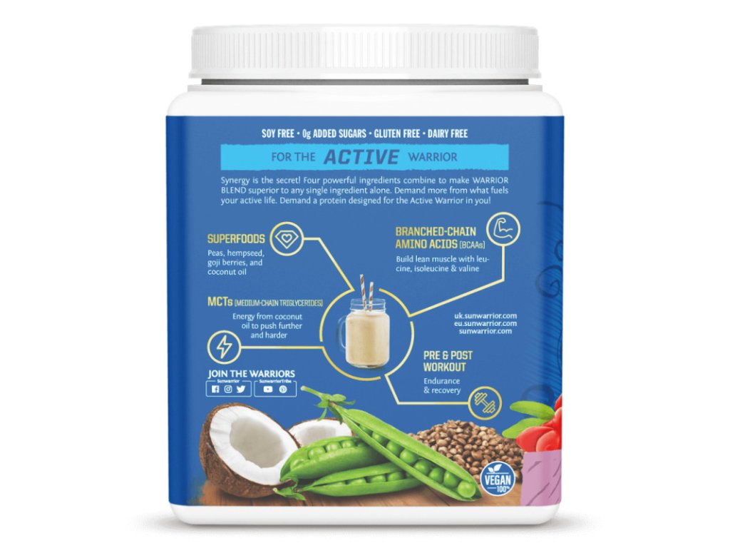 Sunwarrior Protein Blend spojuje a násobí sílu několika bohatých zdrojů bílkovin do jedné jemné, skvěle chutnající formule, která je celkově chutnější než jednotlivé složky zvlášť. Je to unikátní, rostlinný protein s kompletním aminokyselinovým složením, mimořádně bohatý na aminokyseliny, které bývají v jednosložkových proteinech zastoupeny v nižší četnosti.