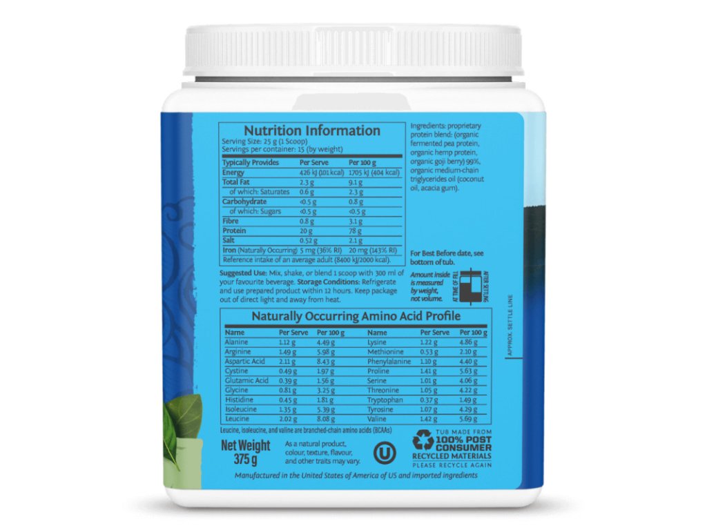 Sunwarrior Protein Blend spojuje a násobí sílu několika bohatých zdrojů bílkovin do jedné jemné, skvěle chutnající formule, která je celkově chutnější než jednotlivé složky zvlášť. Je to unikátní, rostlinný protein s kompletním aminokyselinovým složením, mimořádně bohatý na aminokyseliny, které bývají v jednosložkových proteinech zastoupeny v nižší četnosti.