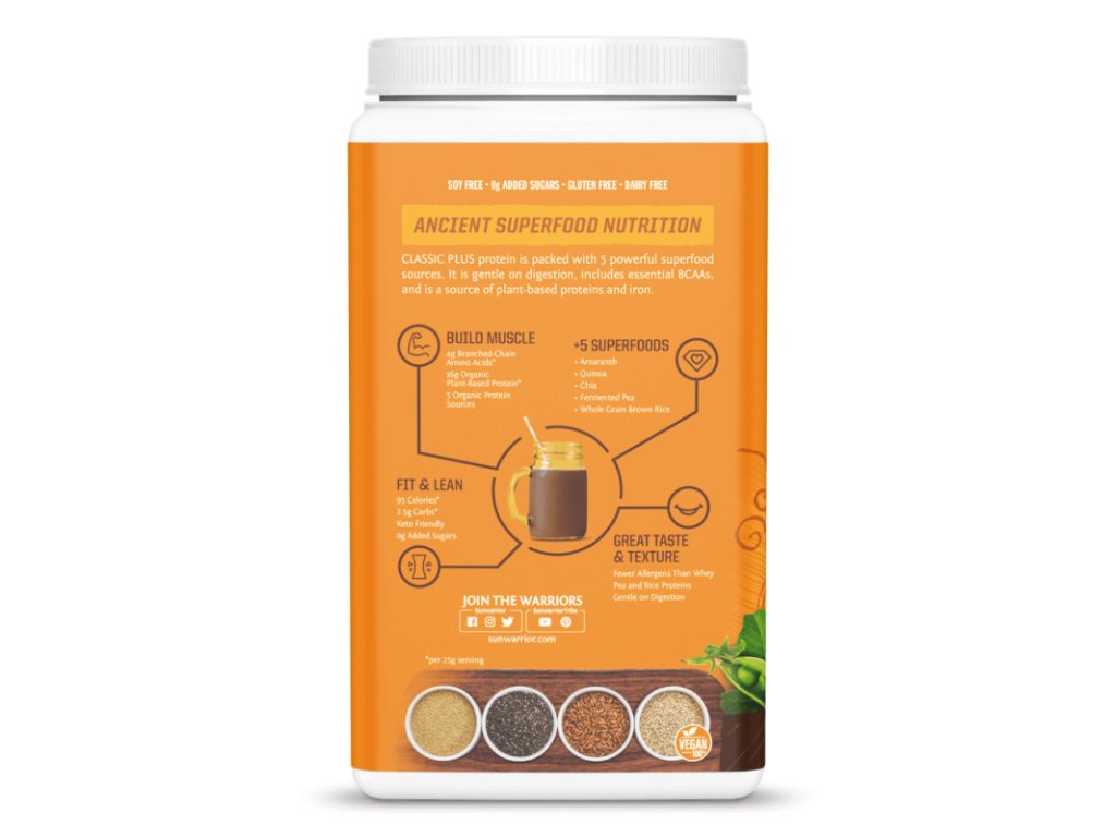 Protein Plus v bio kvalitě je postaven na originálním rýžovém proteinu Sunwarrior, a navíc obsahuje aminokyseliny z hrášku, chia semínek, quinoy a amarantu. Tato kombinace proteinů si stále zakládá na jemné povaze hnědé celozrnné rýže, ale navíc s řádnou dávkou síly, která učinila Warrior Plus tak populární. Hypoalergenní složení bez lepku a sóji zaručuje vysokou vstřebatelnost tohoto proteinu.Oproti běžným proteinům na bázi mléčné bílkoviny je tento protein lehce stravitelný. Díky tomu se po jeho konzumaci budete cítit dobře, bez trávicích obtíží.