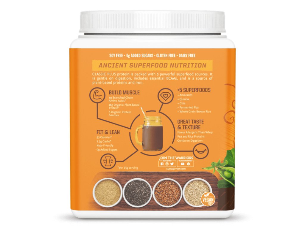Sunwarrior Plus je čistě přírodní přípravek obsahující plné spektrum bílkovin, včetně všech esenciálních aminokyselin.