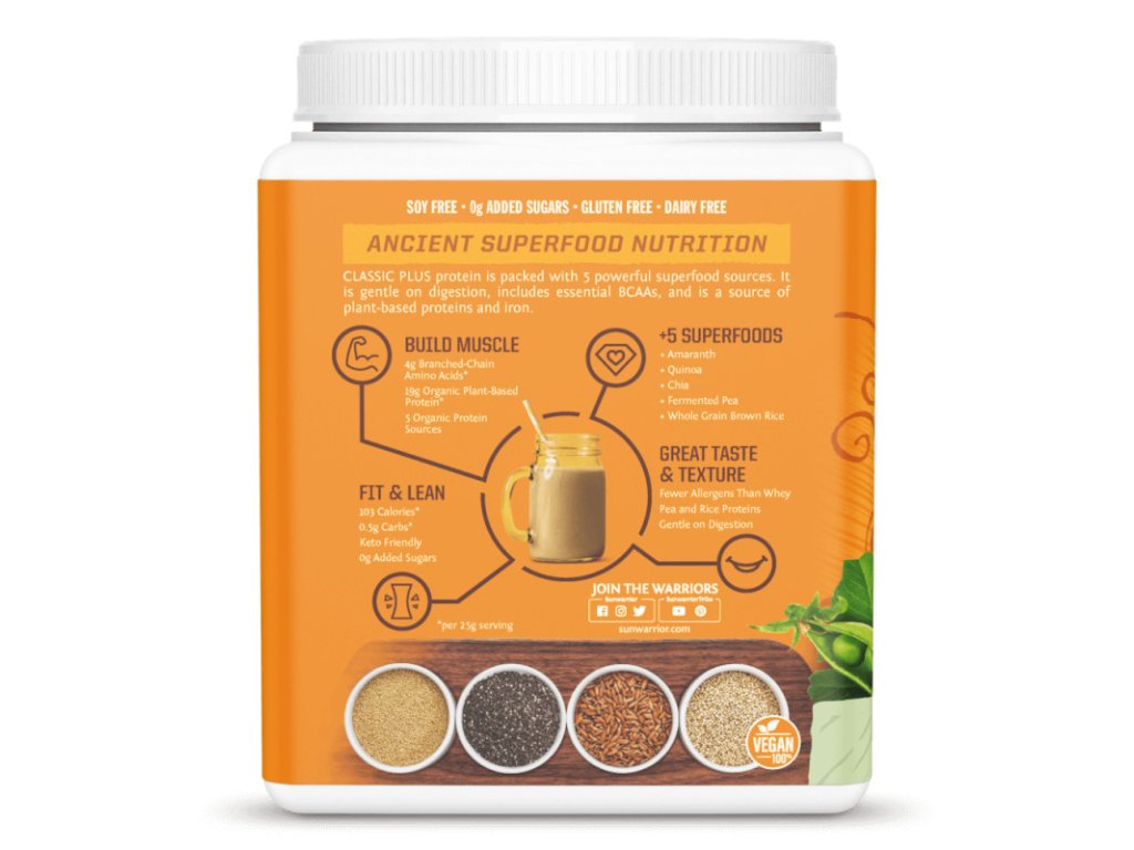 Sunwarrior Plus je čistě přírodní přípravek obsahující plné spektrum bílkovin, včetně všech esenciálních aminokyselin.