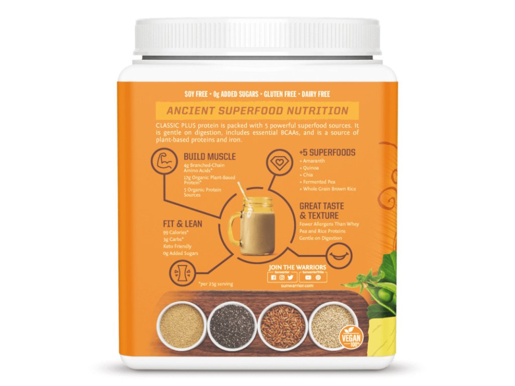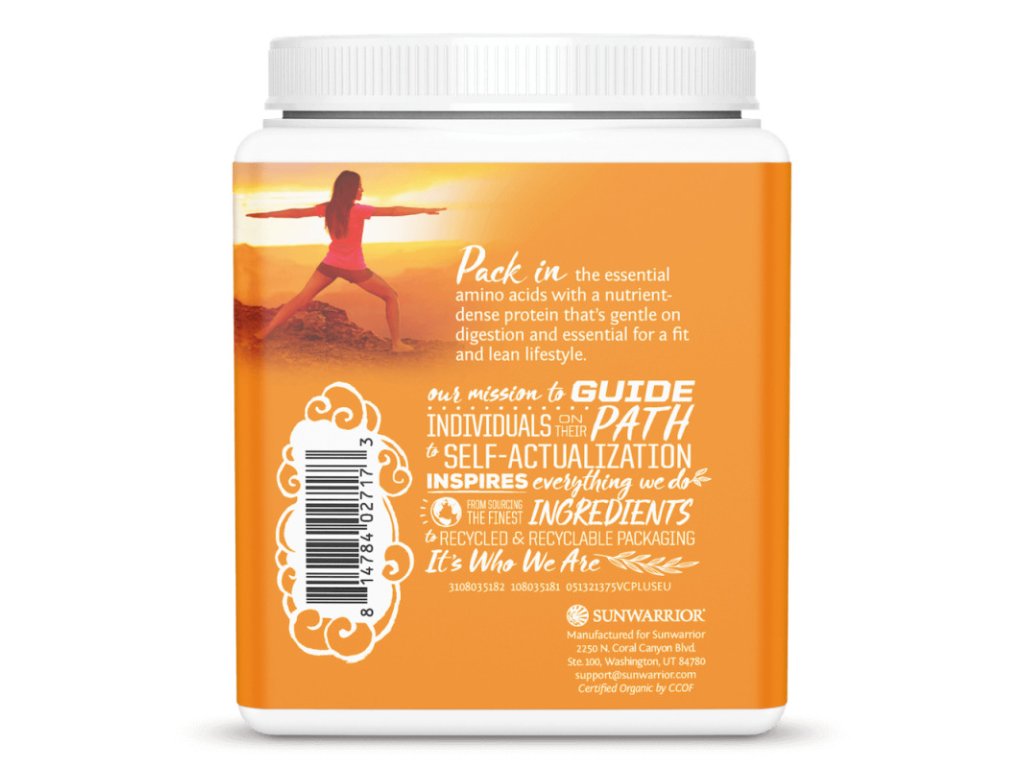 Sunwarrior Plus je čistě přírodní přípravek obsahující plné spektrum bílkovin, včetně všech esenciálních aminokyselin.