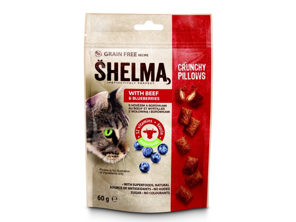 SHELMA polštářky s hovězím a borůvkami GF 60 g