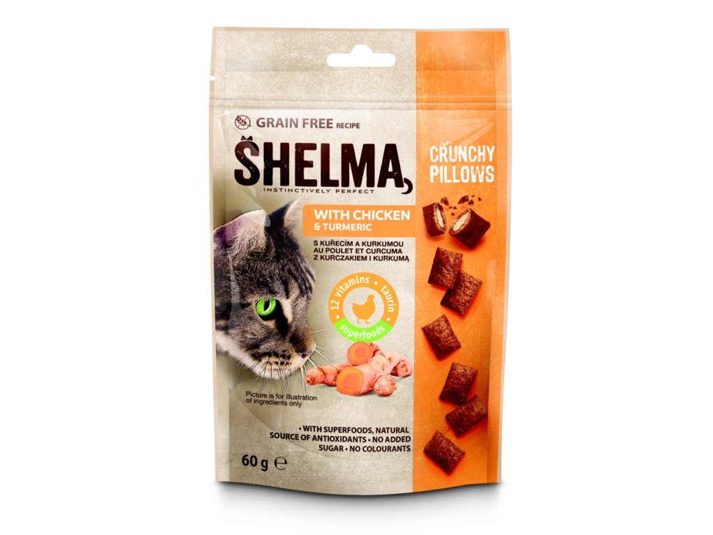 SHELMA polštářky s kuřecím a kurkumou GF 60 g
