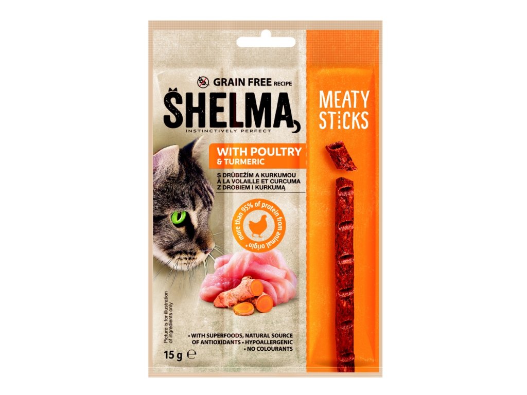 Shelma Sticks s drůbežím a kurkumou GF 15 g