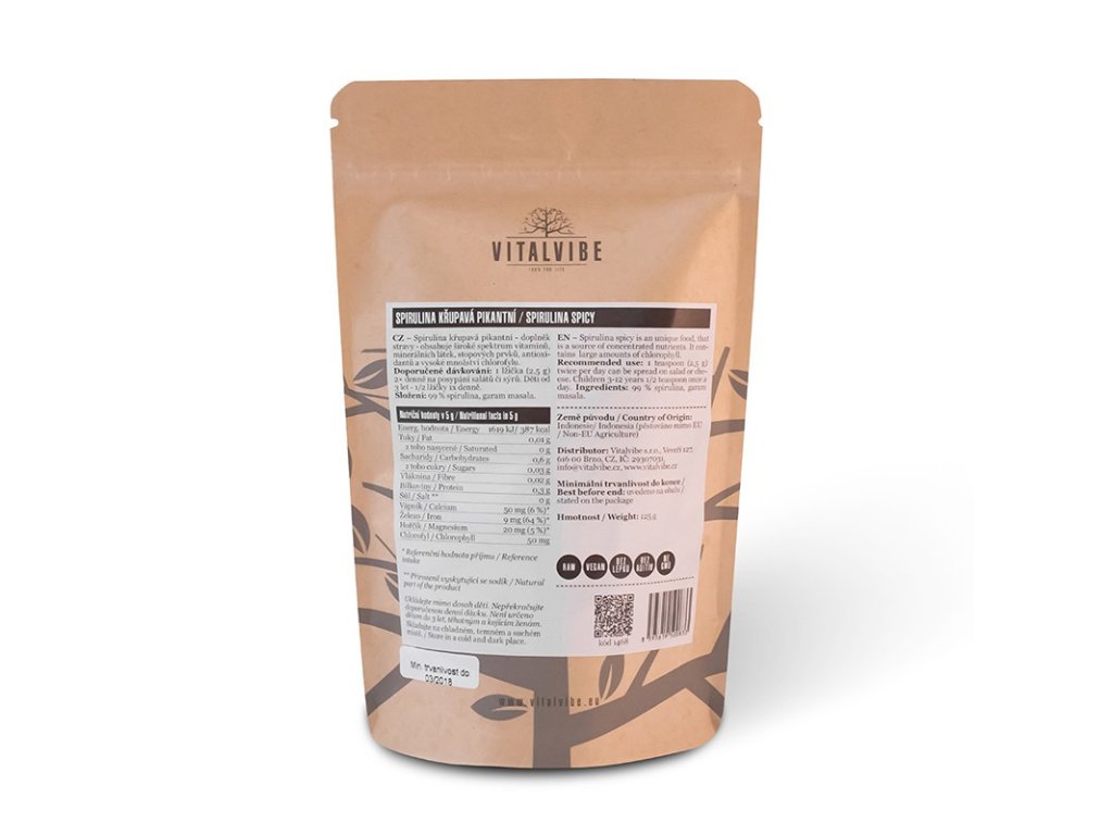 Spirulinu jsme měli v našem portfoliu téměř od vzniku Vitalvibe, jelikož je to úžasná superpotravina a jedno z nejkomplexnějších superfoods. Křupavá a „spicy“ spirulina je úplně nový level, jak může spirulina chutnat. Na této formě je jedinečné, že si ji můžete přidat do salátů, slaných jídel nebo jen tak do pusy. Její předností je mimořádně skvělá chuť.Zahřeje na jazyku, křupne mezi zuby. Zamilujte se také do této zdravé dobrůtky!