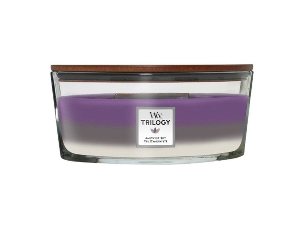 Vonná svíčka loď WoodWick Trilogy Amethyst Sky