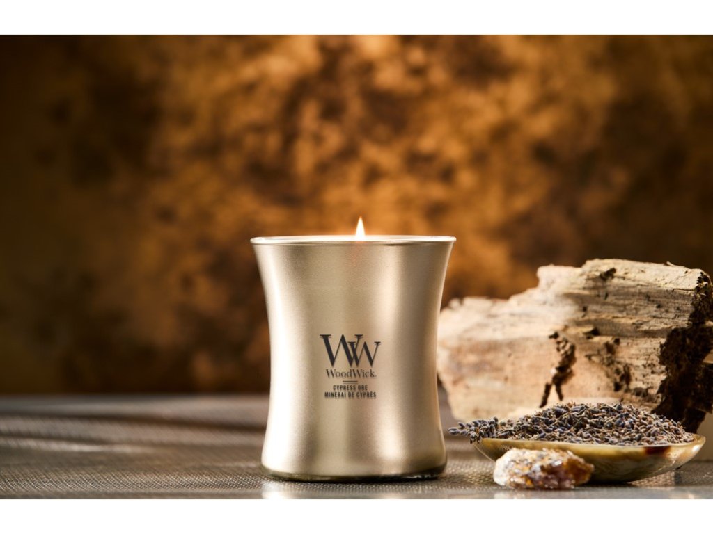 Vonná svíčka ve skle WoodWick Cypress Ore střední