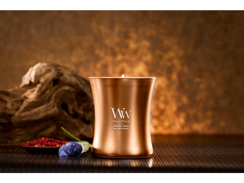 Vonná svíčka ve skle WoodWick Volcanic Orris střední