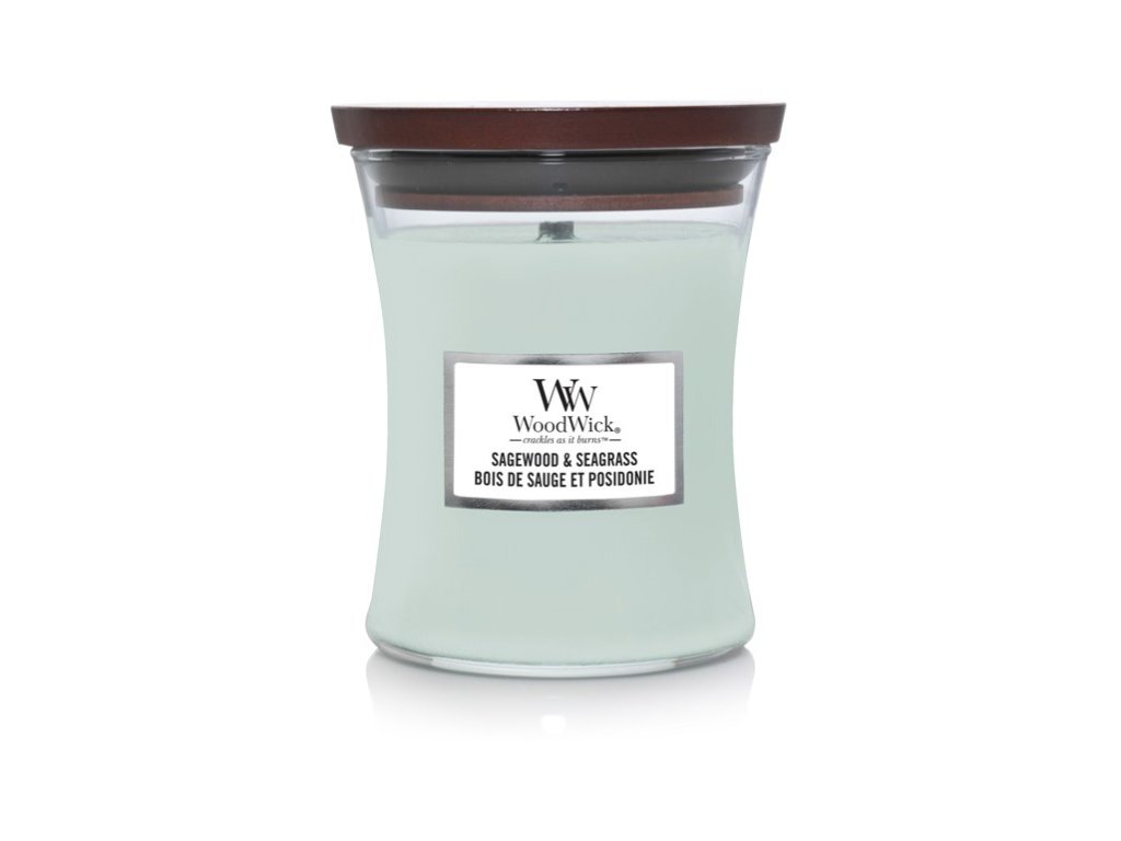 Vonná svíčka Woodwick Sagewood & Seagrass svíčka střední