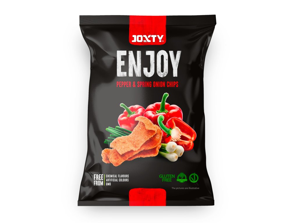Výprodej Chipsy bramborové s červenou paprikou a jarní cibulkou 40 g JOXTY ENJOY CHIPS-exp.18.09.2025