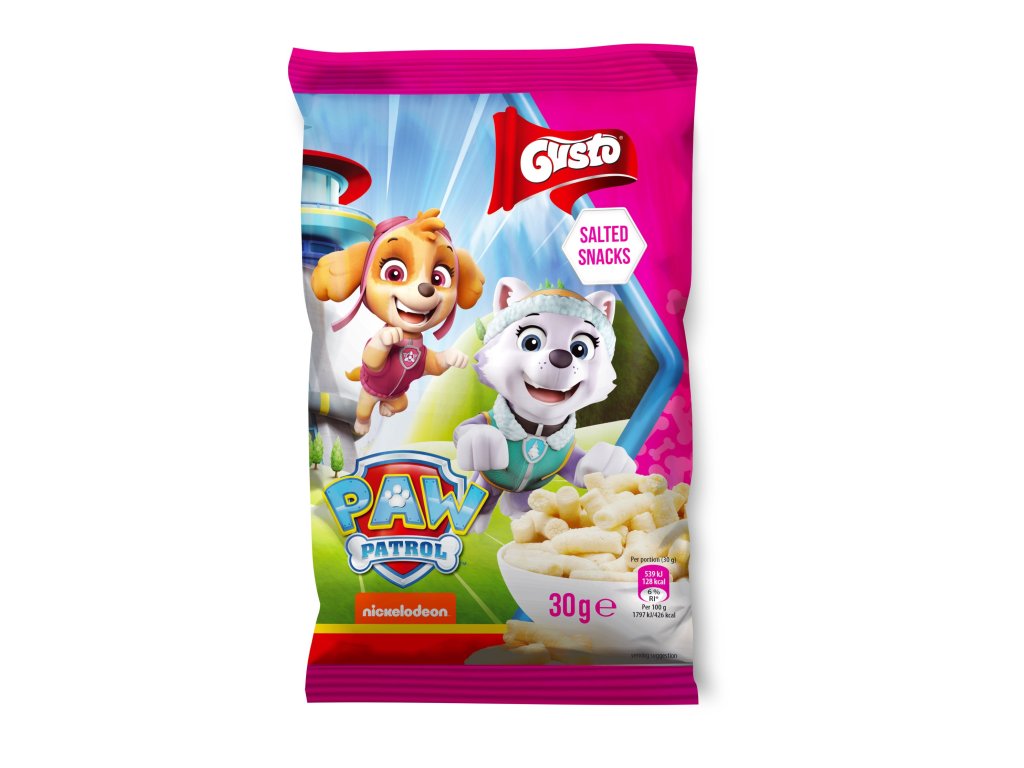 Gusto Tyčinky Tlapková patrola růžové 30 g Skvělý kukuřičný snack pro milovníky Tlapkové patroly. Ideální na cesty, ale i na mlsání doma s kamarády. Složení: Kukuřičná krupice 90 %, palmový olej, jedlá sůl 0,5 %. Může obsahovat obiloviny obsahující lepek, mléko, celer, sóju, arašídy, ořechy a výrobky z nich. Skvělý kukuřičný snack pro milovníky Tlapkové patroly.