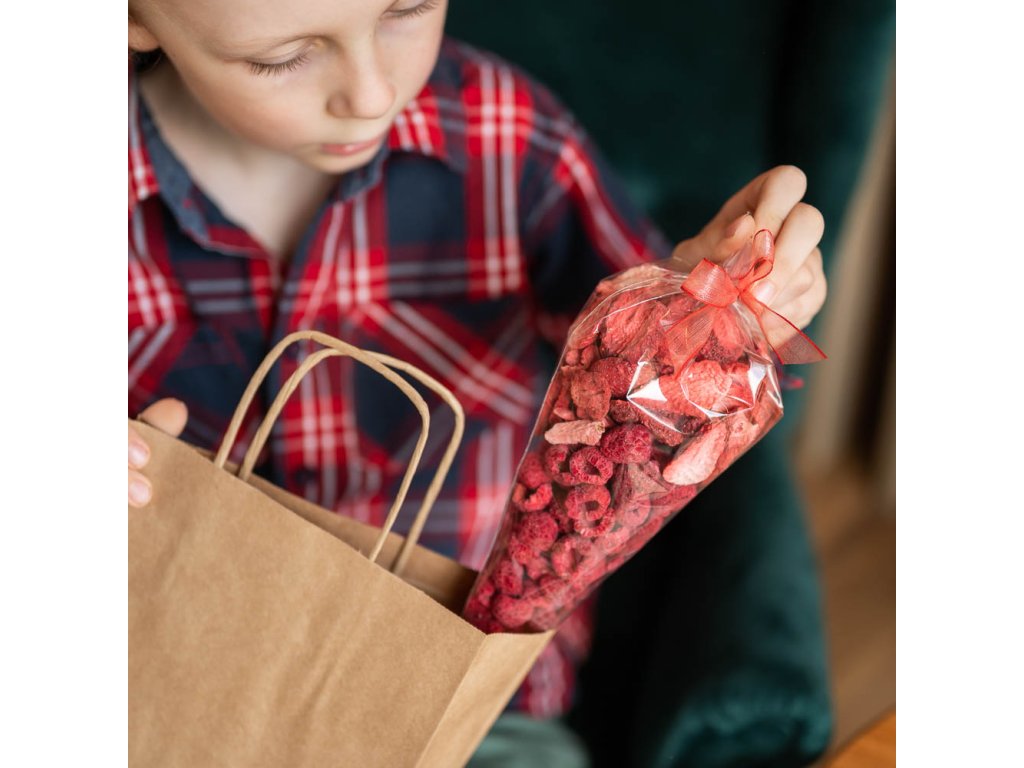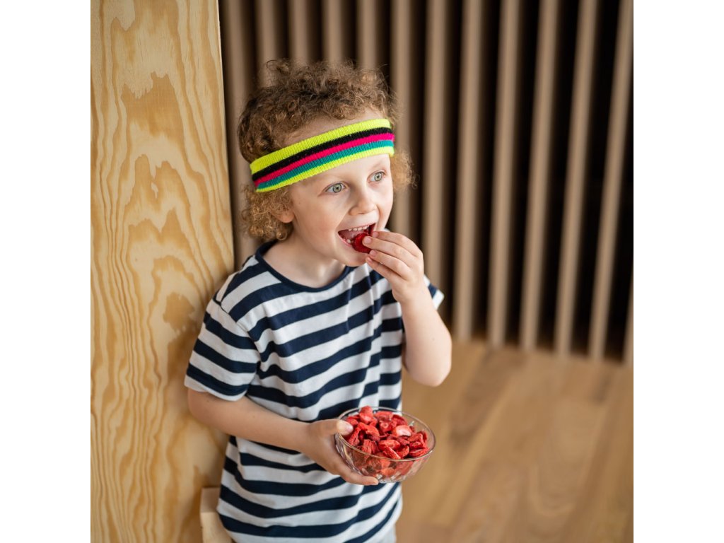 Chutná a sladká svačinka pro malé i velké. Jahody a maliny jsou lyofilizovány, tedy mrazem sušeny.
