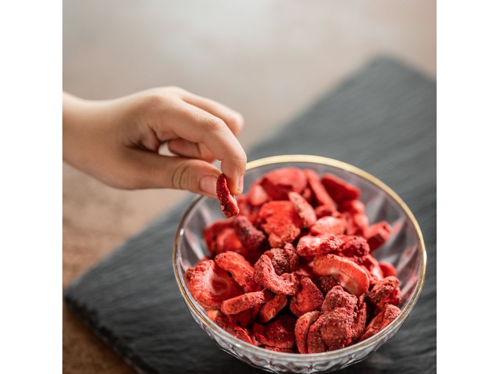 Lyofilizace je metoda pomocí které se vysušuje jakýkoliv vlhký materiál. Mohou se využívat ve farmaceutickém, kosmetickém prostředí, pro vysoušení knih a dokumentů nebo právě na vysušení ovoce. Jahody si díky této metodě zachovávají chuť a vůni jako čerstvě utržené z keříku, aniž by byly doplněny o barviva, konzervanty nebo jiné podporující látky.