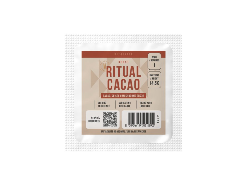Díky cordycepsu, guaraně, mace a zahřívacímu koření vám rozproudí krev v žilách. Pár doušků a je tu příliv energie i dobré nálady.Blahodárné účinky kakaa znali, ctili a hojně využívali již pradávné národy indiánů v Jižní Americe. Podávali ho jako medicínu při pověstných kakaových ceremoniích. Nyní je tu Ritual Cacao Boost pro vás. Když si to dovolíte, vnese trochu posvátna i do vašich všedních dnů.
