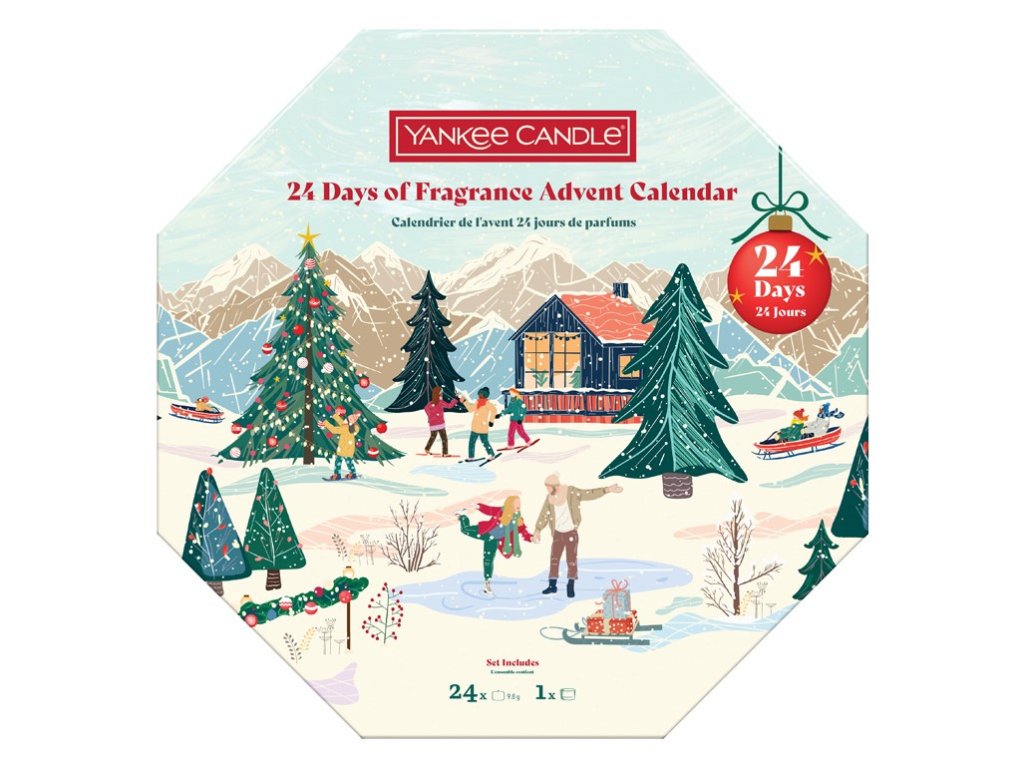 Tento kalendář ukrývá 24 vonných čajových svíček, a to vždy po dvou kusech od vůní: Christmas Cookie, Christmas Eve, Cinnamon Stick, Silver Sage & Pine, Black Cherry, Amber & Sandalwood, Winter Night Stars, Wild Orchid. Jako bonus pak svícínek na čajovou svíčku z čirého skla.