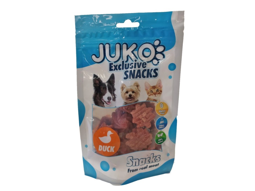 Složení: kachna 85,4 %, škrob 5 %, sorbitol 3 %, glycerin 3 %, rostlinný protein 3 %, sůl 0,5 %, sorban draselný 0,1 %.
